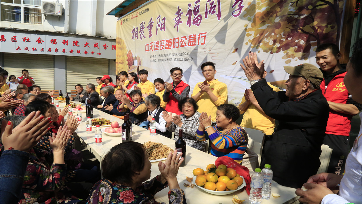 2017年重陽節六建志愿者在“中天道能食堂”為社區老人舉辦重陽宴